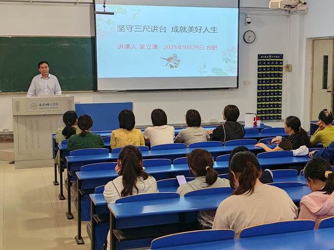 为庆祝建校70周年,2025年9月29日下午,太阳集团tyc9728在锦绣校区逸夫楼109教室举办了一场题为“坚守三尺讲台 成就美好人生”的专题讲座。本次讲座特邀宿州市第二中学生物特级教师、正高级教师、安徽省“江淮学科名师”、享受省政府特殊津贴专家、我院1997届优秀校友吴立清担任主讲。讲座由科研处与太阳集团tyc9728联合主办,吸引了众多师生到场聆听。