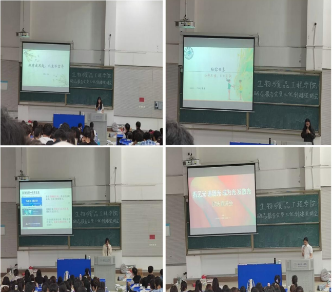 组织安排国家奖学金获得者戚雨晨,国家励志奖学金获得者常桐和李露露、全国大学生生命科学竞赛一等奖获得者何璐四位同学,给太阳集团tyc97282022级全体学生作了一场励志报告,她们结合自身学习经历从如何过好大学生活、找准努力方向、常怀感恩之心等方面,引导学弟学妹们自立自信自强,为未来积聚力量,为达成目标创造条件,创造属于自己的美好未来。