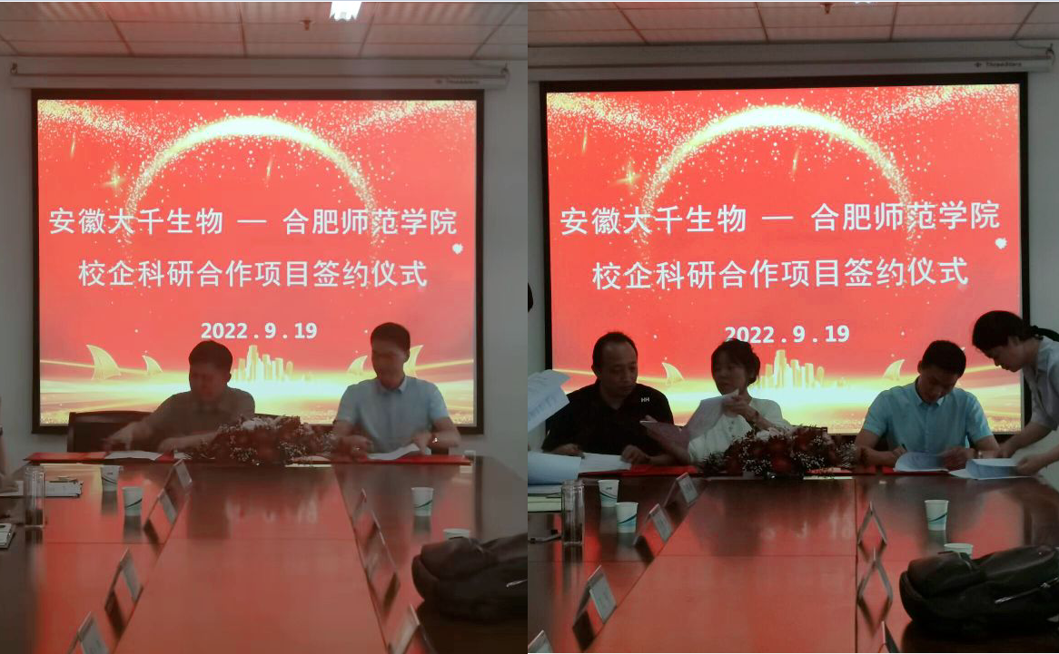 会上,芮双印代表大千生物和生命科学学院教授王伟、副教授张雁、王晶晶等签署了“胆汁酸质谱检测试剂盒关键技术研发”和“磷脂酶D应用于sd LDL-C检测试剂盒关键技术的研发”两项横向项目的技术开发(委托)合同。
