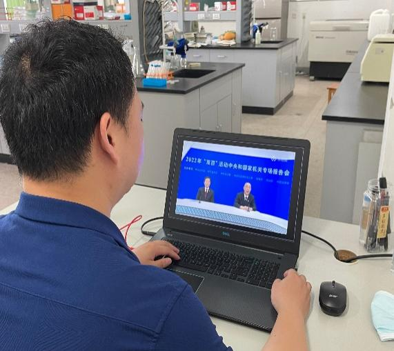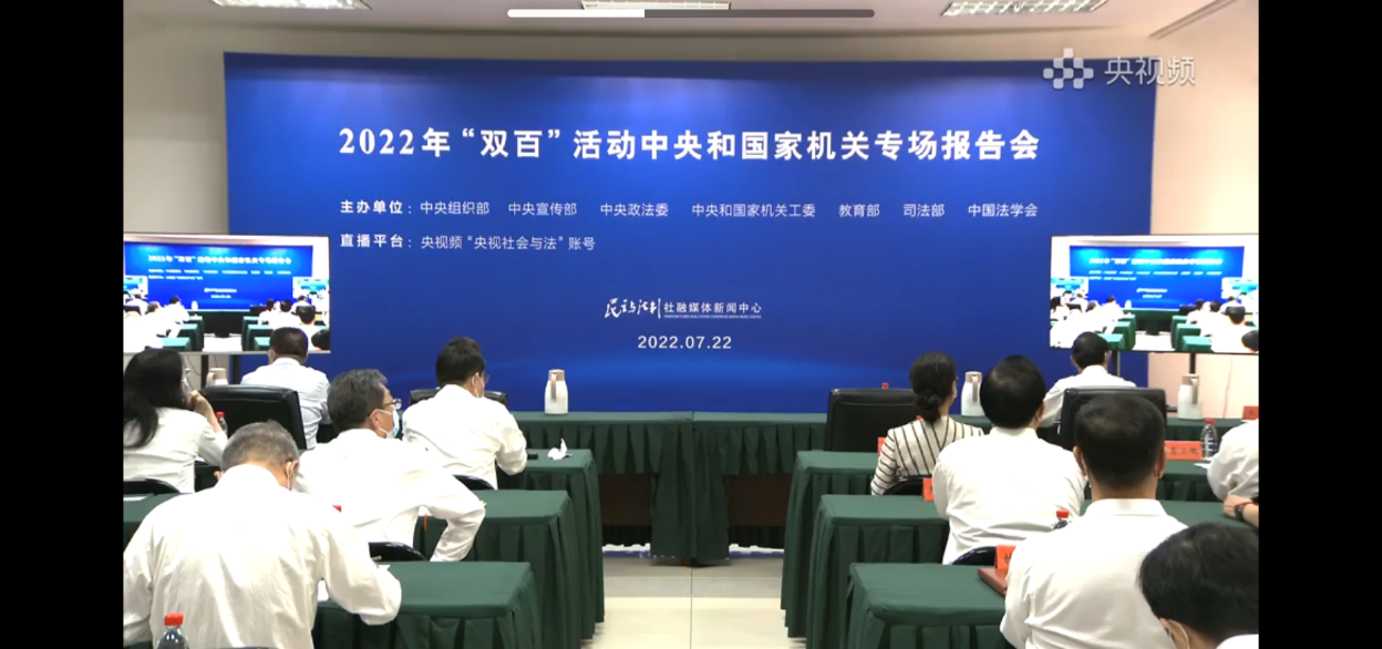本网讯 为深入学习宣传和贯彻落实习近平法治思想,更好推动中国特色社会主义法治体系建设,7月22日10:00,生物技术教工党支部组织收看2022年“双百”法治宣讲报告会并展开热议。生命科学学院党委书记郭桃芬以及生物技术教工党支部全体党员参加,活动由该支部书记陈金武组织和主持。