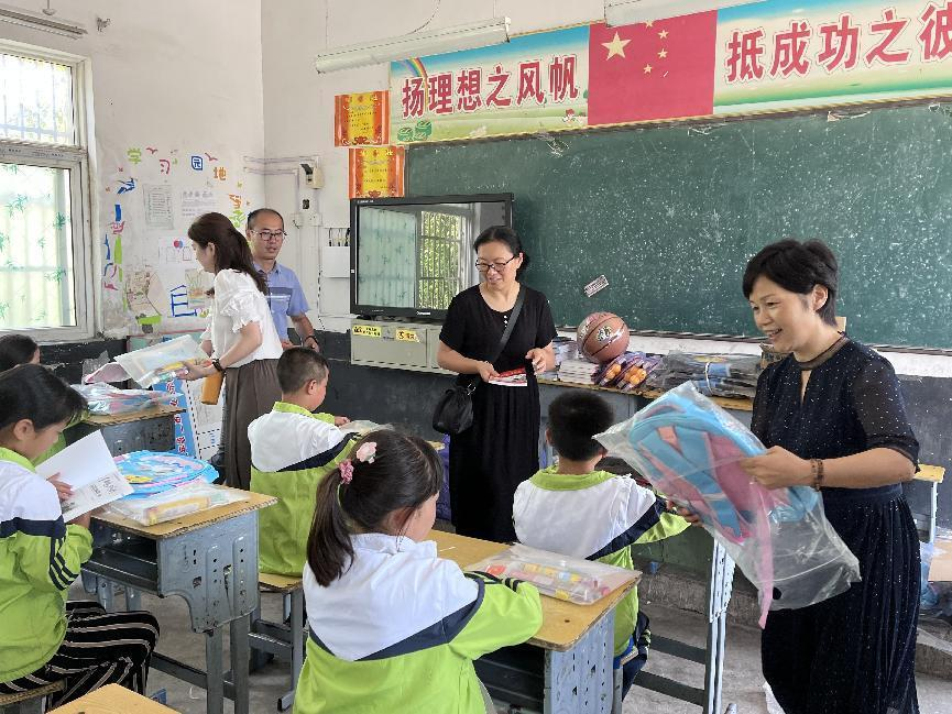 随后,郭桃芬一行来到汪庙小学慰问建档立卡学生。郭桃芬一行亲切询问孩子们的学习和生活情况,并且为他们发放了文具、书本、书包以及体育用品。鼓励孩子们要好好学习天天向上,努力成为祖国栋梁之材。