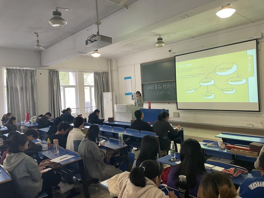 本网讯 为进一步营造学生勇于创新、善于创新的氛围,激发创造潜能和学习热情,加强学生实践能力、创新能力和合作精神的培养,提高学生专业知识技能,进一步提高人才培养质量。生命科学学院于10月21日中午在逸夫楼A101举行了9728太阳集团2021届食品创新大赛。生命科学学院党委书记郭桃芬、副书记杨娜、食品质量与安全系主任王伟、实验室主任耿明、实践部主任朱勇等出席大赛并担任评委,本次大赛还特别邀请了教务处王道平科长现场指导并担任评委。