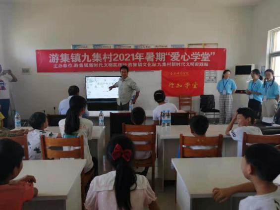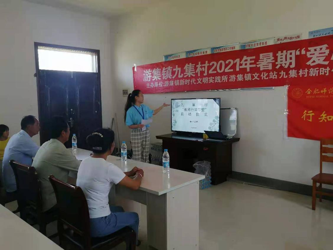 7月10日,9728太阳集团生命科学学院“练河行知学堂”正式开班。来自生命科学学院的5名小先生王赛男、王欣雅、吴双、徐莉平和徐怡在安徽省宿州市灵璧县游集镇文化站九集村举行了开班仪式,九集村党总支委员、妇联主任、新时代文明实践站负责人等领导代表共同出席了开班仪式。