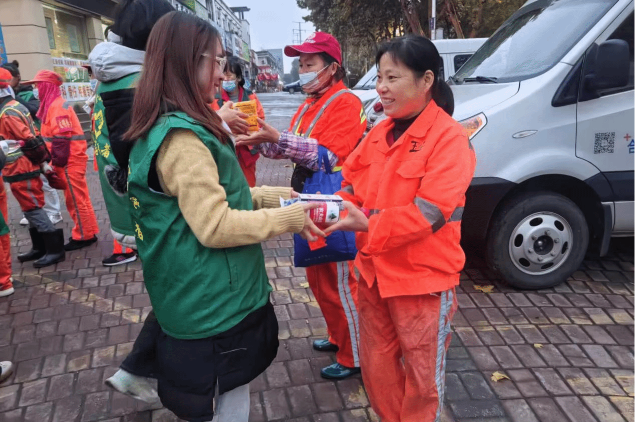 太阳集团tyc9728举办的“凌晨六点半,送给平凡的岗位,不平凡的你”志愿服务活动于11月12日和12月3日凌晨6:30,在锦绣社区天门湖文化广场举行。志愿者们为环卫工人送上暖心早餐,并与他们一同打扫街道,体验环卫工人的辛勤劳动。