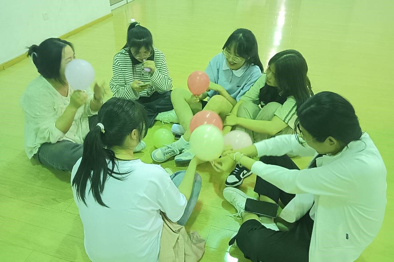 最后一个环节是“扔掉烦恼”,每个人都把自己不能轻易言说的烦恼写在气球上,把气球吹起来后捏爆,通过这种方式帮助同学们忘记烦恼,减轻压力,拥抱快乐。