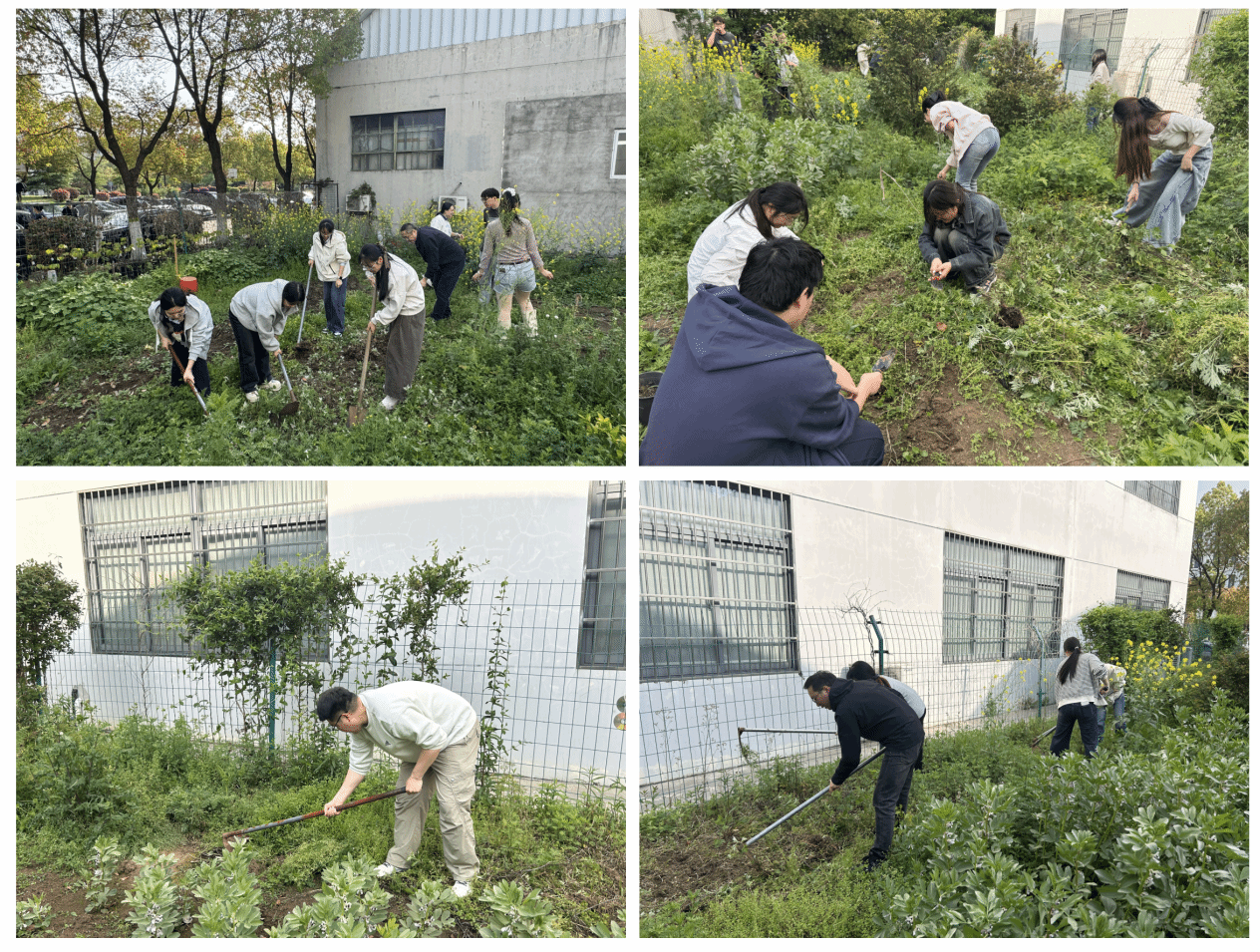 师生们拿起工具,分组协作,开展除草、松土、播种、清理枯枝落叶等任务。教师党员率先垂范,一边劳动一边讲解生态保护与专业知识的结合点。青年学子们干劲十足,在实践中感受劳动的光荣与不易。现场气氛热烈,汗水与笑声交织,形成了一堂“行走的思政课”。